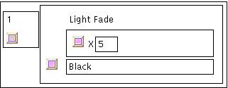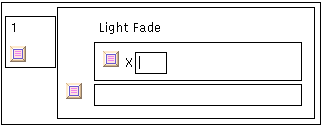 Der einfache Event besteht nur aus einer einzelnen Aktion, einem Lichtwechsel -- dafür steht der Text Light Fade. Lichtwechsel wie dieser hier bestehen aus einer Blendzeit und dem Namen eines Cue, mit dem der Lichtwechsel endet. (In diesem Fall kennzeichnet die Blendzeit einen ,,X-Fade'' oder ,,Cross-Fade'', deswegen das X.) Der Cursor kann mit der Maus in das Blendzeitfenster bewegt werden; die Blendzeit ist eine Sekundenzahl. Nachkommastellen lassen sich durch einen Punkt abtrennen, also z.B. 1.5 für ,,anderthalb Sekunden''.